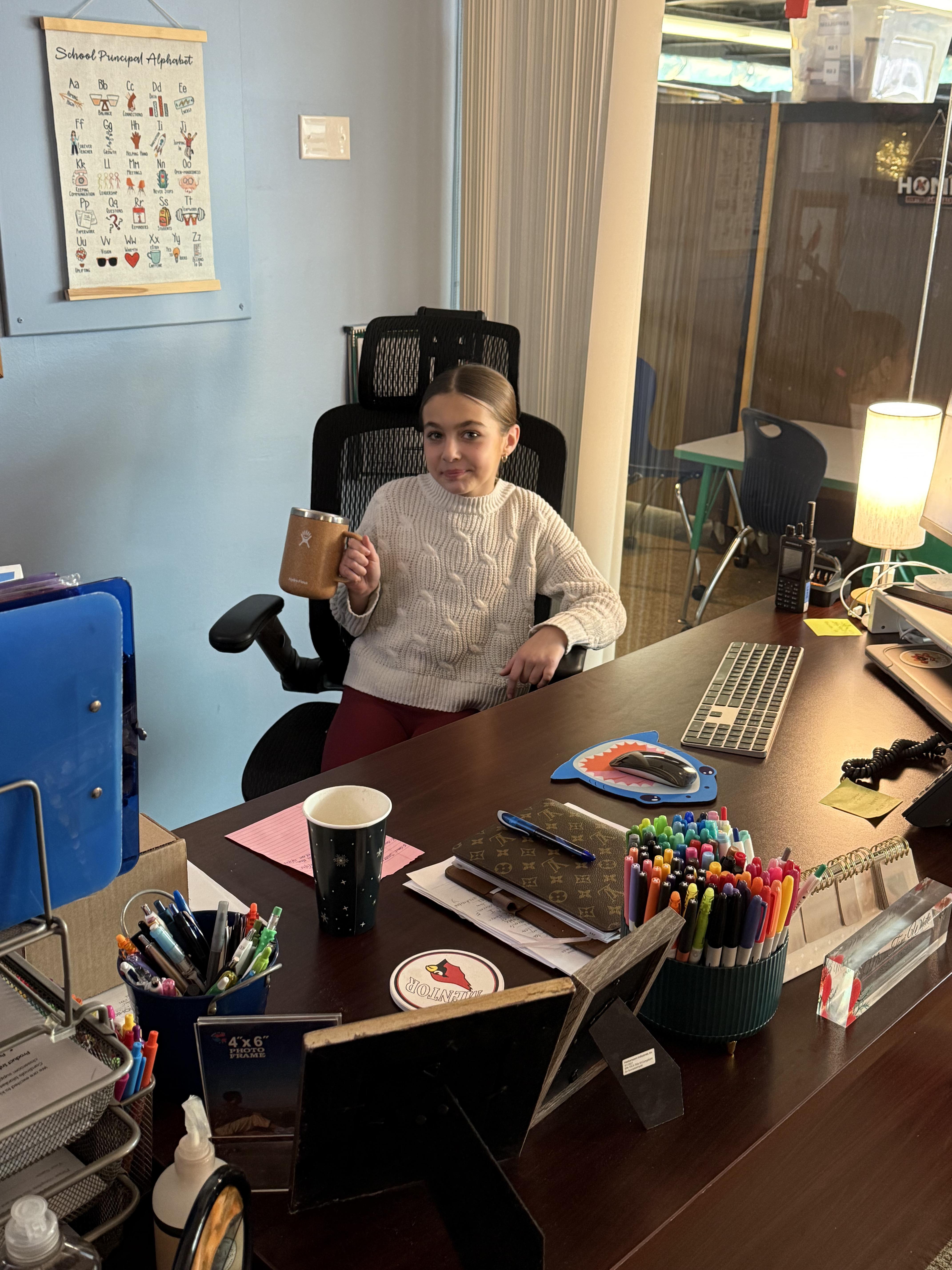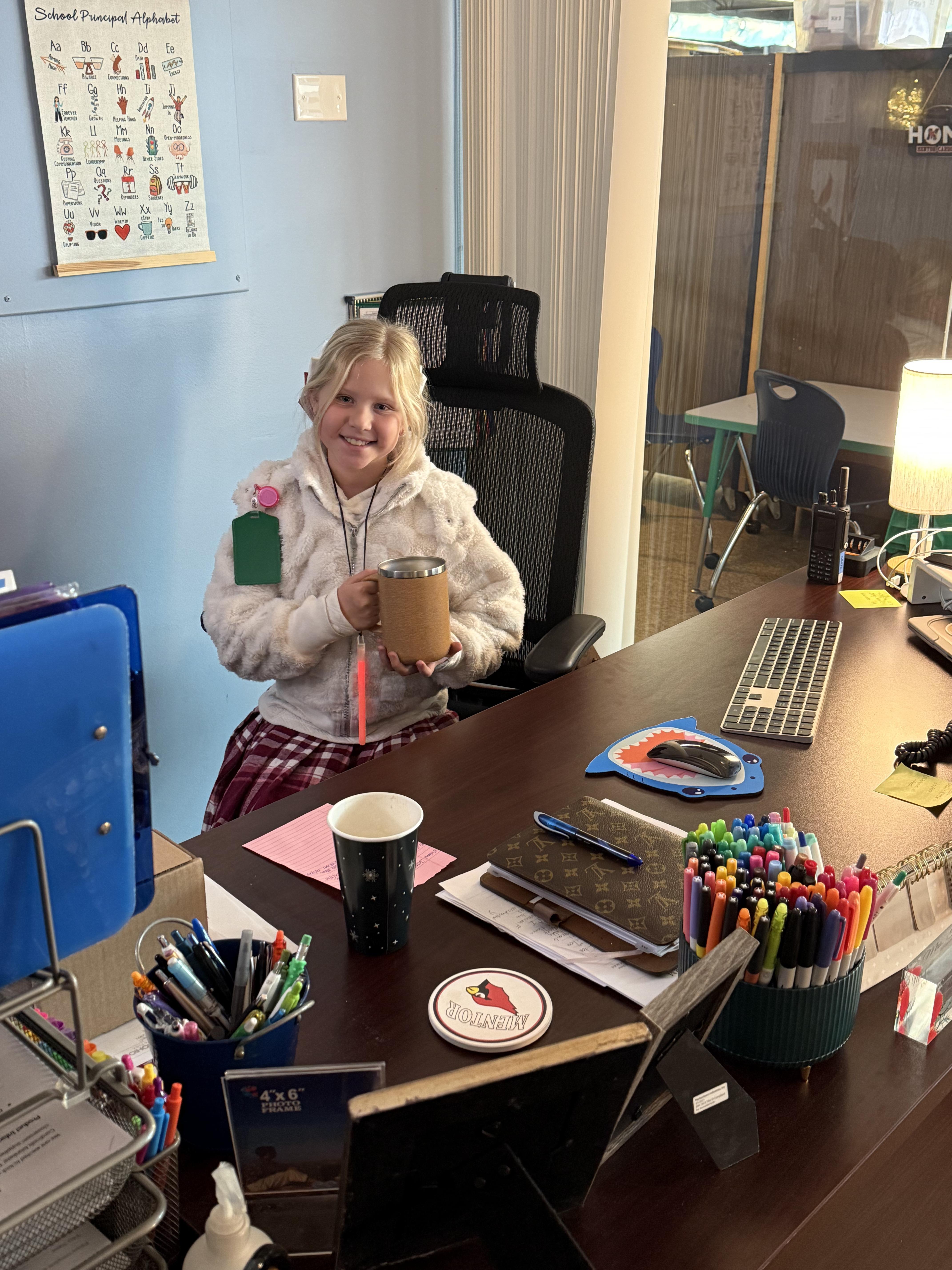 Last week we had the joy of celebrating our top Bird Dash sellers with a very special Principal for the Day experience. Our student leaders joined me for morning announcements, hot cocoa in the teachers lounge, visited classrooms, and got a behind-the-scenes look at what it takes to help run a school.